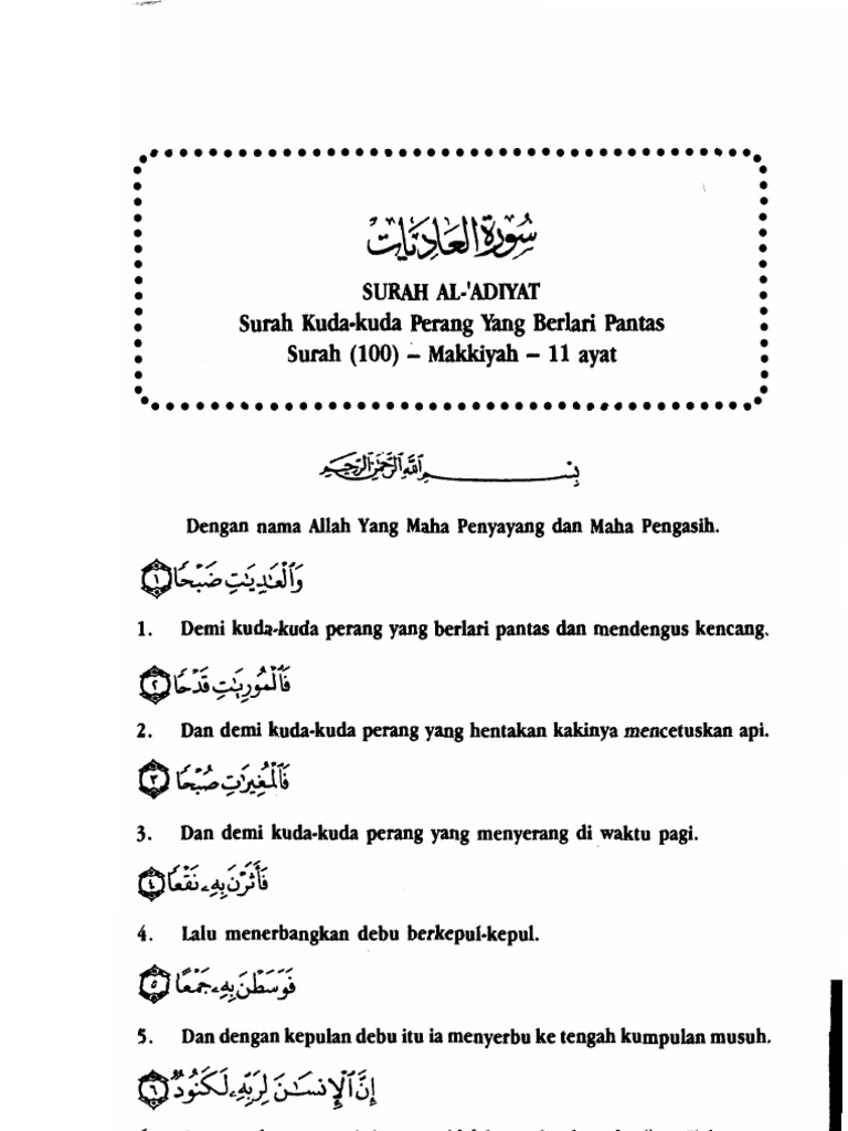 Terjemahan Ayat Suci Alquran Surah Al A Diyat Terdiri Atas 11 Ayat Dan Tergolong Surah Makkiyah Surat Ini Diturunkan Setelah Surah Al Asr Nama Al Aadiyat Diambil Dari Kata Al Aadiyaat Yang Artinya